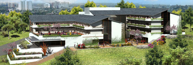 With its shaded balconies and terrace gardens, the Finnish Well-Being Centre (FWBC) represents a modern Care Centre for the elderly with a relaxing and patient-friendly care environment. The Care Centre project is a low mainly 3-storied, partly 4-storied building housing all the key facilities and technologies for a modern elderly care facility. In addition to the care services there are a total of 120 beds for intensified care, normal group care, and short stay patients. The main entrance lobby is a three-story-high open glass wall space. Next to the lobby there is a Japanese-style sun garden. The Day Centre houses the facilities for different activities and therapies, a gymnasium, a library, a rehabilitation unit, medical, psychologist and beauty services and a home help unit.